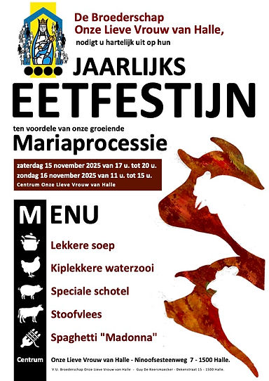 Zaterdag 15 november kan u tussen 17 u en 20 u aanschuiven en zondag 16 november van 11 u tot 15 u. Uw aanwezigheid is een steun voor onze processie die we elk jaar verder hopen uit te bouwen.